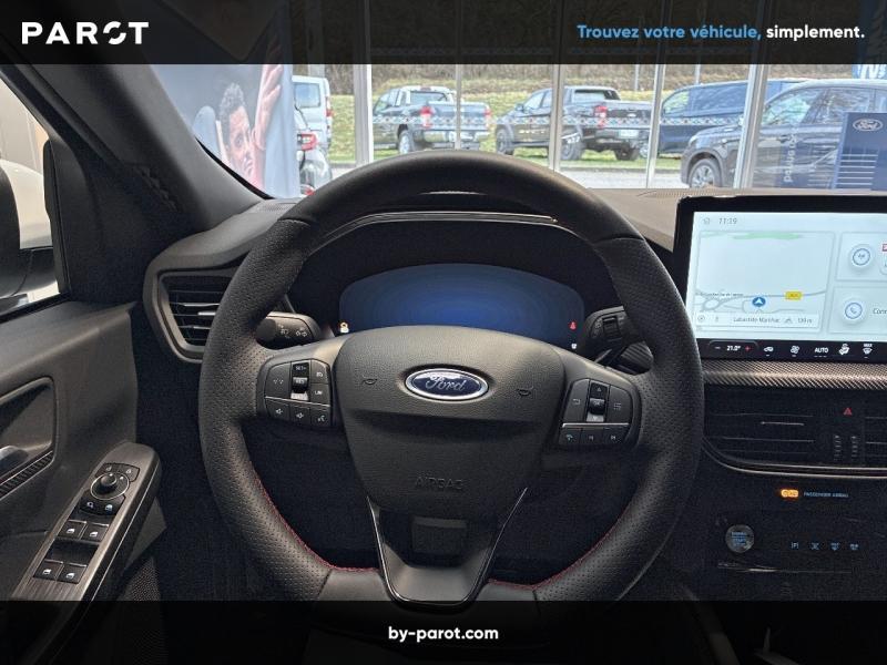Blanc Glacier|Roue de secours galette 17"|6 Haut parleurs|ABS|Accoudoir central AV avec rangement|AFIL|Aide au démarrage en côte|Aide au freinage d'urgence|Airbag conducteur|Airbag passager|Airbag passager déconnectable|Airbags latéraux avant|Antidémarrage électronique|Antipatinage|Appel d'Assistance Localisé|Appel d'Urgence Localisé|Appui-tête conducteur réglable hauteur|Appui-tête passager réglable en hauteur|Arrêt et redémarrage auto. du moteur|Bacs de portes avant|Banquette 60/40|Banquette AR rabattable|Banquette arrière 3 places|Banquette coulissante|Barres de toit|Becquet arrière|Boite à gants fermée|Boucliers AV et AR couleur caisse|Caméra de recul|Capteur de luminosité|Capteur de pluie|Ceintures avant ajustables en hauteur|Clim automatique bi-zones|Commandes du système audio au volant|Commandes vocales|Compte tours|Contrôle élect. de la pression des pneus|Démarrage sans clé|EBD|Echappement à double sortie|Eclairage au sol|Eclairage d'ambiance|Ecran multifonction couleur|Ecran tactile|ESP|Feux arrière à LED|Feux de freinage d'urgence|Feux de jour à LED|Filtre à Pollen|Fixations Isofix aux places arrières|GPS Cartographique|Guidage pour manoeuvre de stationnement|Interface Media|Jantes Alu|Kit mains-libres Bluetooth|Lampe de coffre|Lampes de lecture à l'arrière|Lampes de lecture à l'avant|Limiteur de vitesse|Lunette arrière surteintée|Mode de conduite|Ordinateur de bord|Ouverture des vitres séquentielle|Phares antibrouillard LED|Phares avant LED|Poignées ton carrosserie|Porte-gobelets avant|Prise 12V|Prise auxiliaire de connexion audio|Prise USB|Radar de stationnement AR|Radar de stationnement AV|Radio numérique DAB|Reconnaissance panneaux de signalisation|Régulateur de vitesse|Répétiteurs de clignotant dans rétro ext|Rétroviseur intérieur électrochrome|Rétroviseurs dégivrants|Rétroviseurs électriques|Rétroviseurs rabattables électriquement|Services connectés|Siège conducteur avec réglage lombaire|Siège conducteur réglable en hauteur|Siège passager avec réglage lombaire|Siège passager réglable en hauteur|Suspensions Sport|Système avancé de détection d'obstacles|Système d'accès sans clé|Système d'alerte de véhicule en approche|Système d'éclairage intelligent à LED|Système de contrôle des angles morts|Système de prévention des collisions|Tablette cache bagages|Tissu Mira ST-Line avec spq rouge|TMC|Verrouillage centralisé à distance|Verrouillage centralisé des portes|Vert Bursting Métalisée|Vitres arrière électriques|Vitres arrière surteintées|Vitres avant électriques|Volant multifonction|Volant réglable en profondeur et hauteur.
